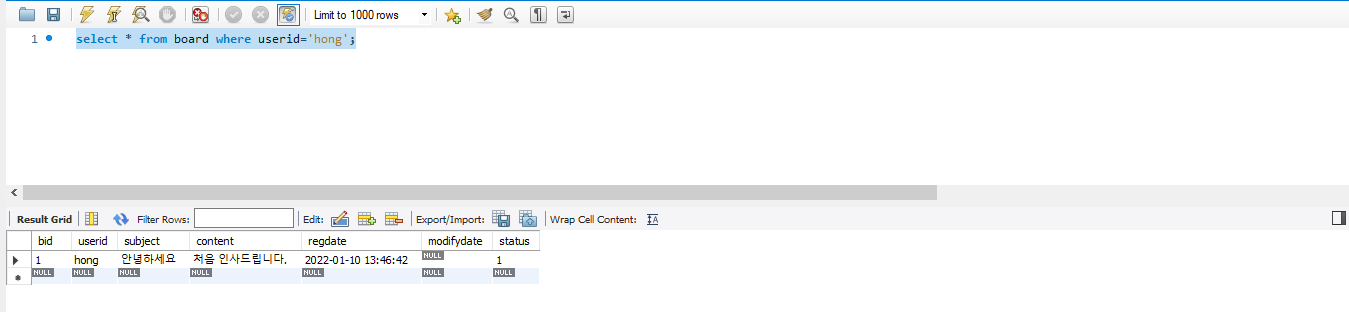 select * from board where userid='hong';