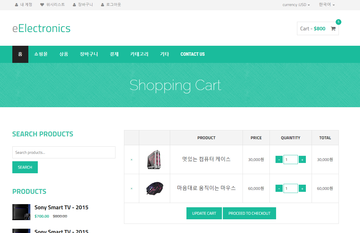 수정한 부분은 주석을 달아 놓았다. 간단하다. 이번엔 장바구니를 확인해보자.