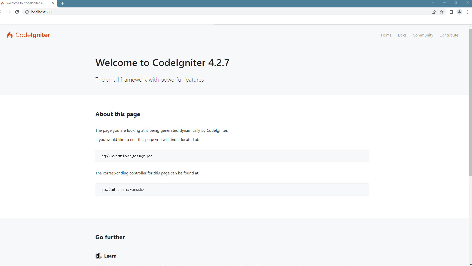 놀랍게도 ci4 화면이 뜬다. ㅎㅎㅎㅎ...