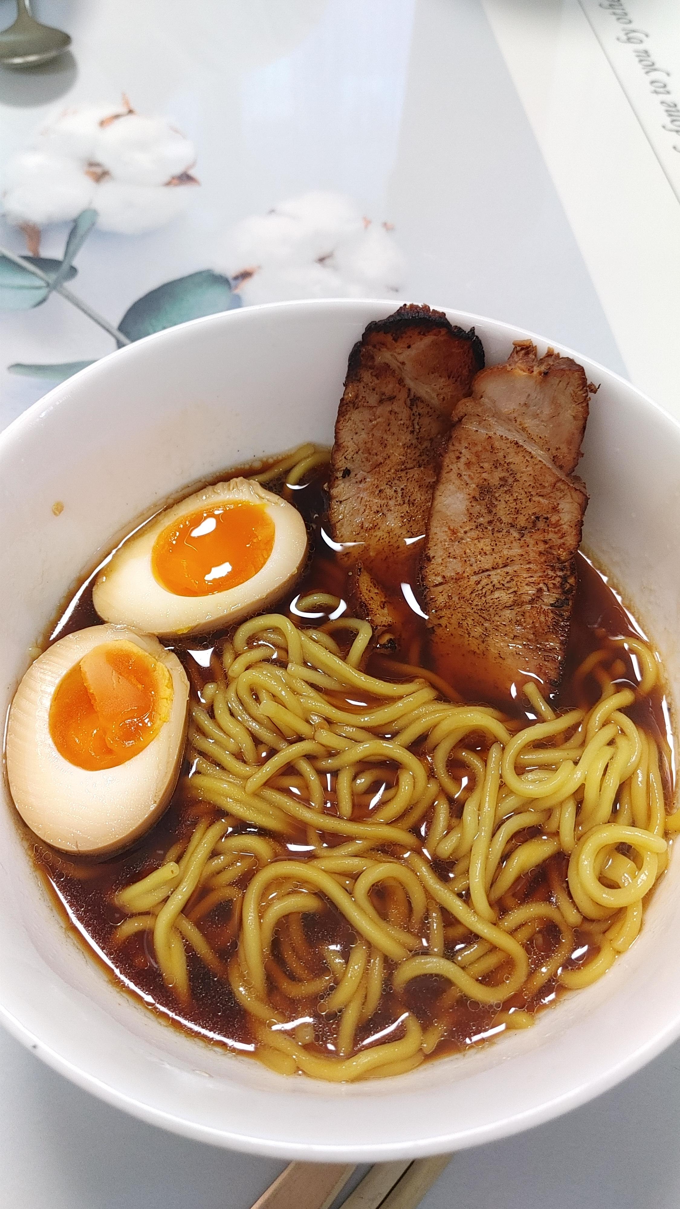 면을 준비해서 그위에 육수를 붓고 토핑한다.