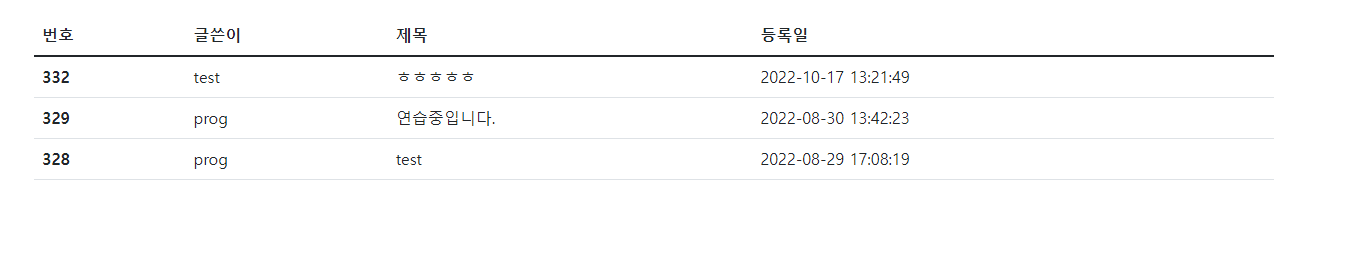 아까와 같이 게시판의 내용이 출력되면 성공이다.