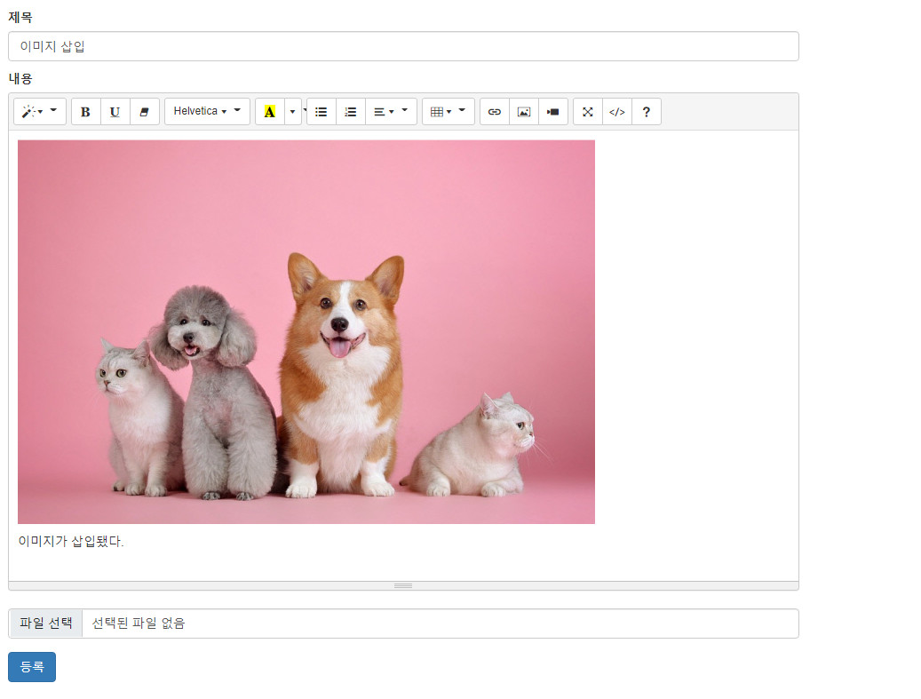 위 이미지들을 잘 보자. 저 버튼을 눌러서 파일선택을 하면 선택한 이미지가 웹에디터 안으로 들어가며 저장하면 그대로 디비에 저장되게 되고 게시판 볼때 그 이미지가 나타나야한다.