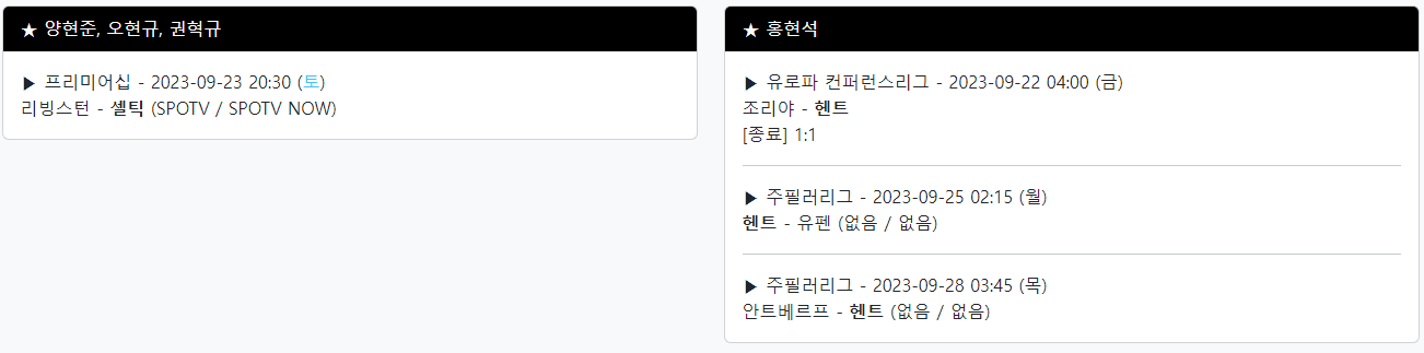 | 주말 해외파 축구 경기 중계 일정을 알아보자. 다음주 챔스도. (0) | 2023.09.15 |