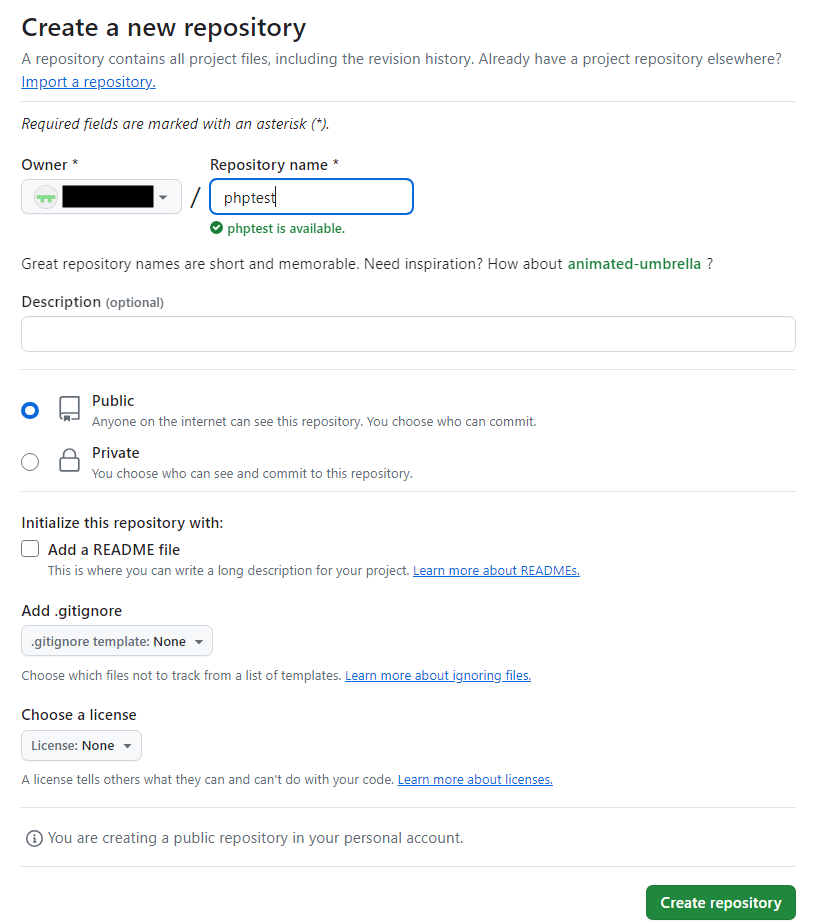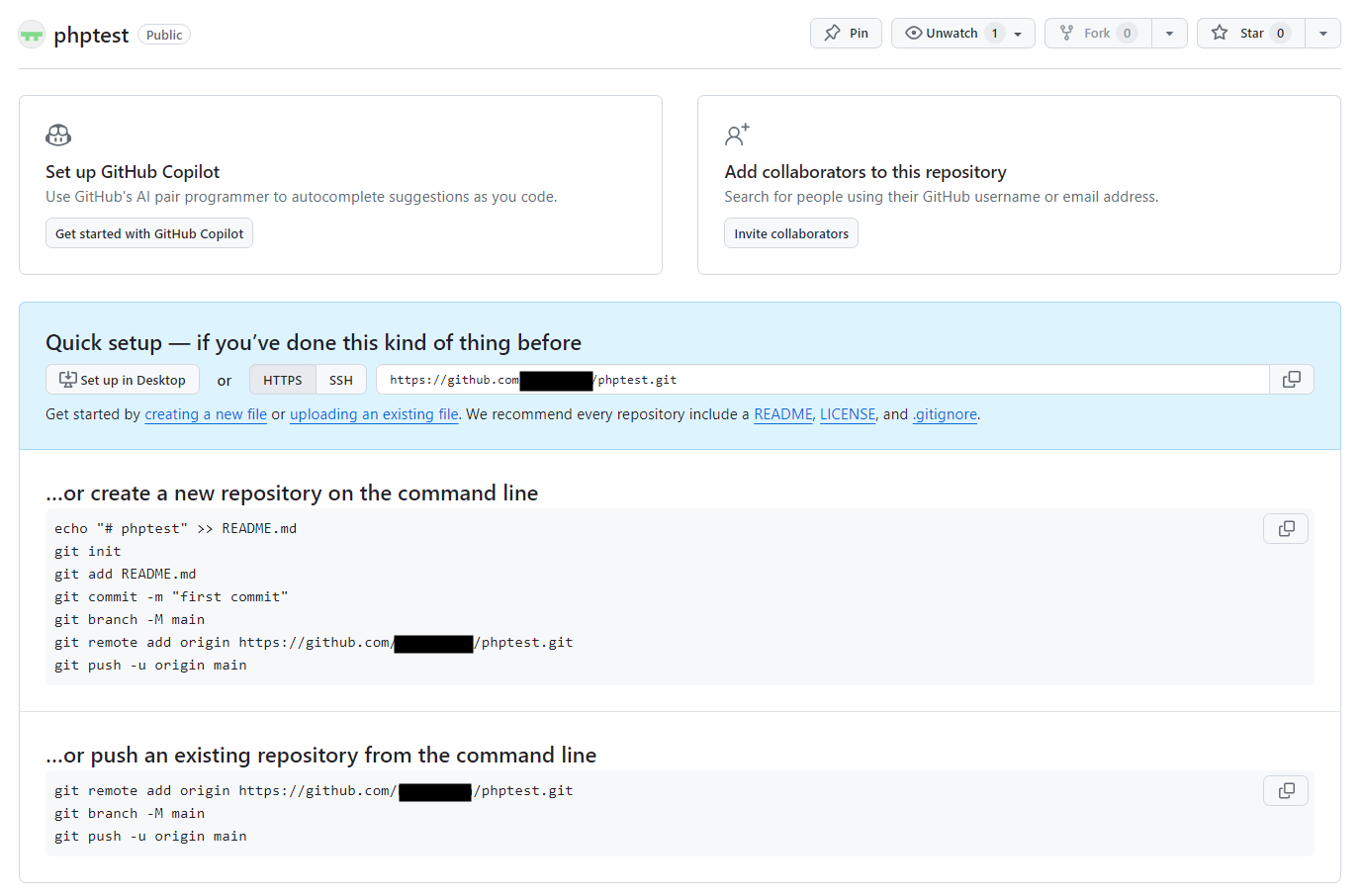 $git remote add origin https://github.com/깃헙아이디/phptest.git