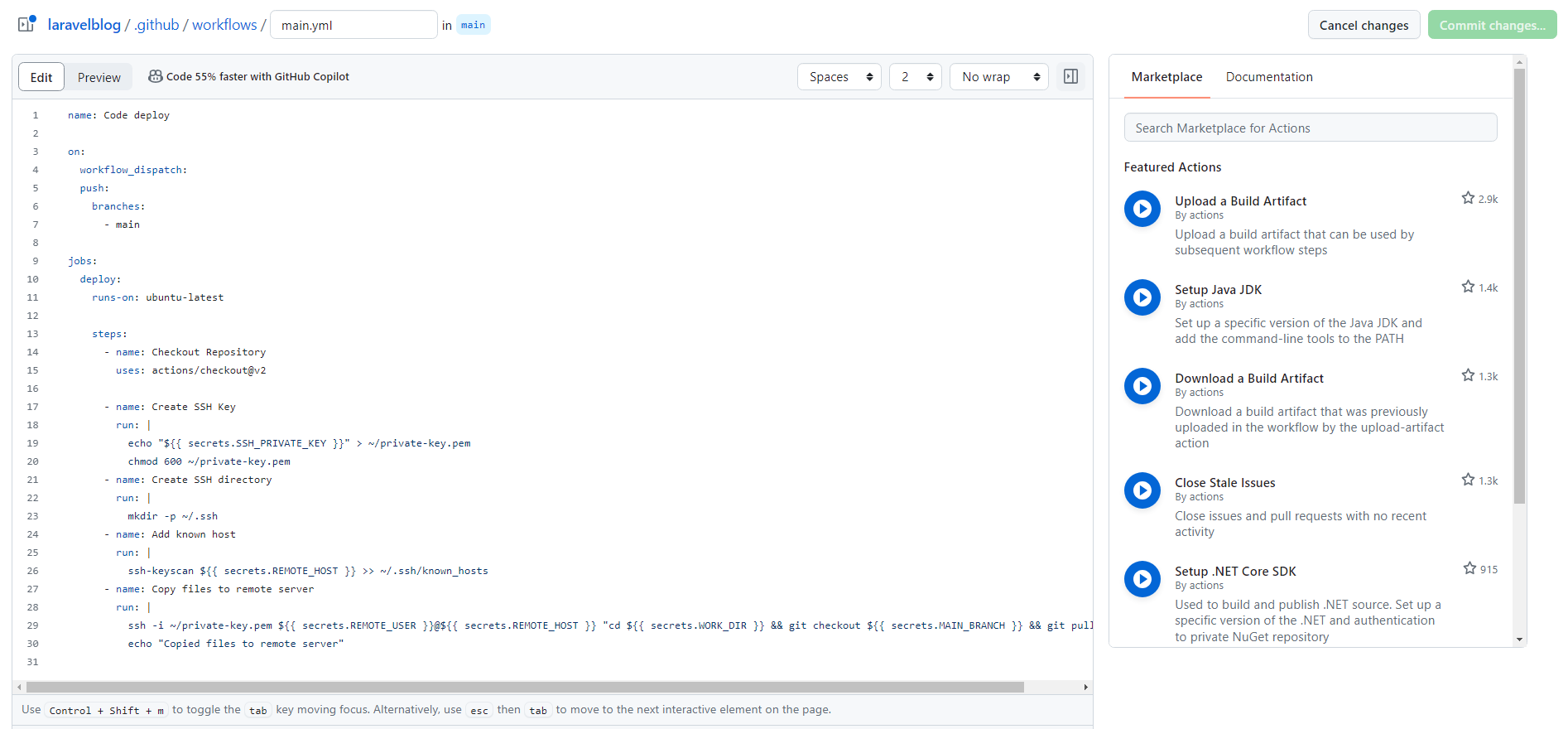 https://github.com/깃허브아이디/laravelblog/settings/secrets/actions