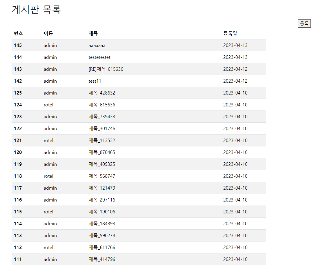 이렇게 보여지게 된다. 이제 여기다가 baord 테이블에서 데이터를 가져와서 뿌려보자.