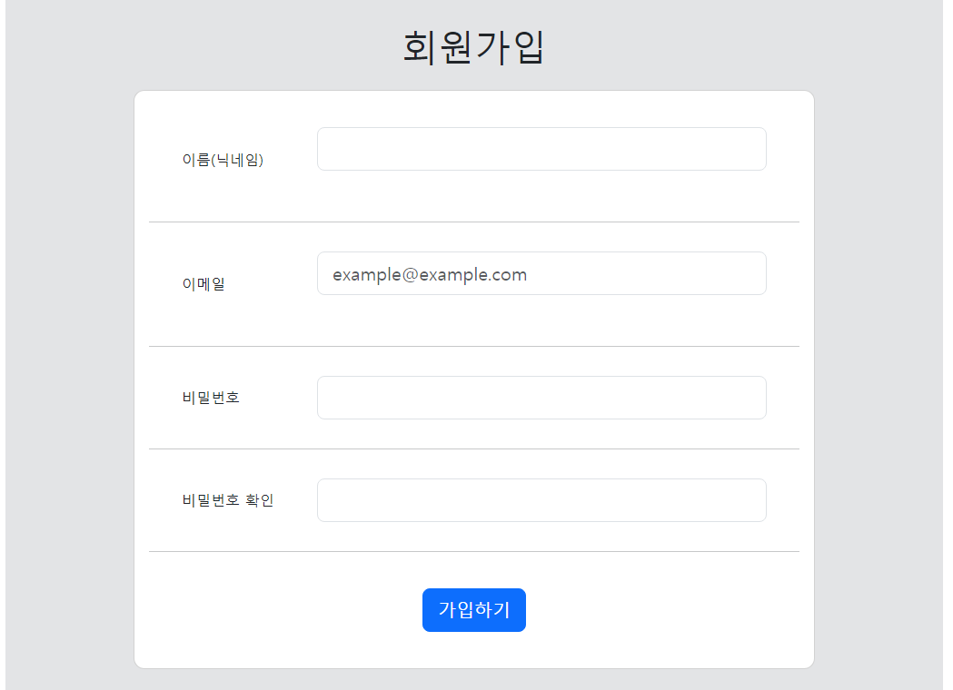 목록에서 회원가입 버튼을 클릭하면 해당 페이지가 열리게 된다.