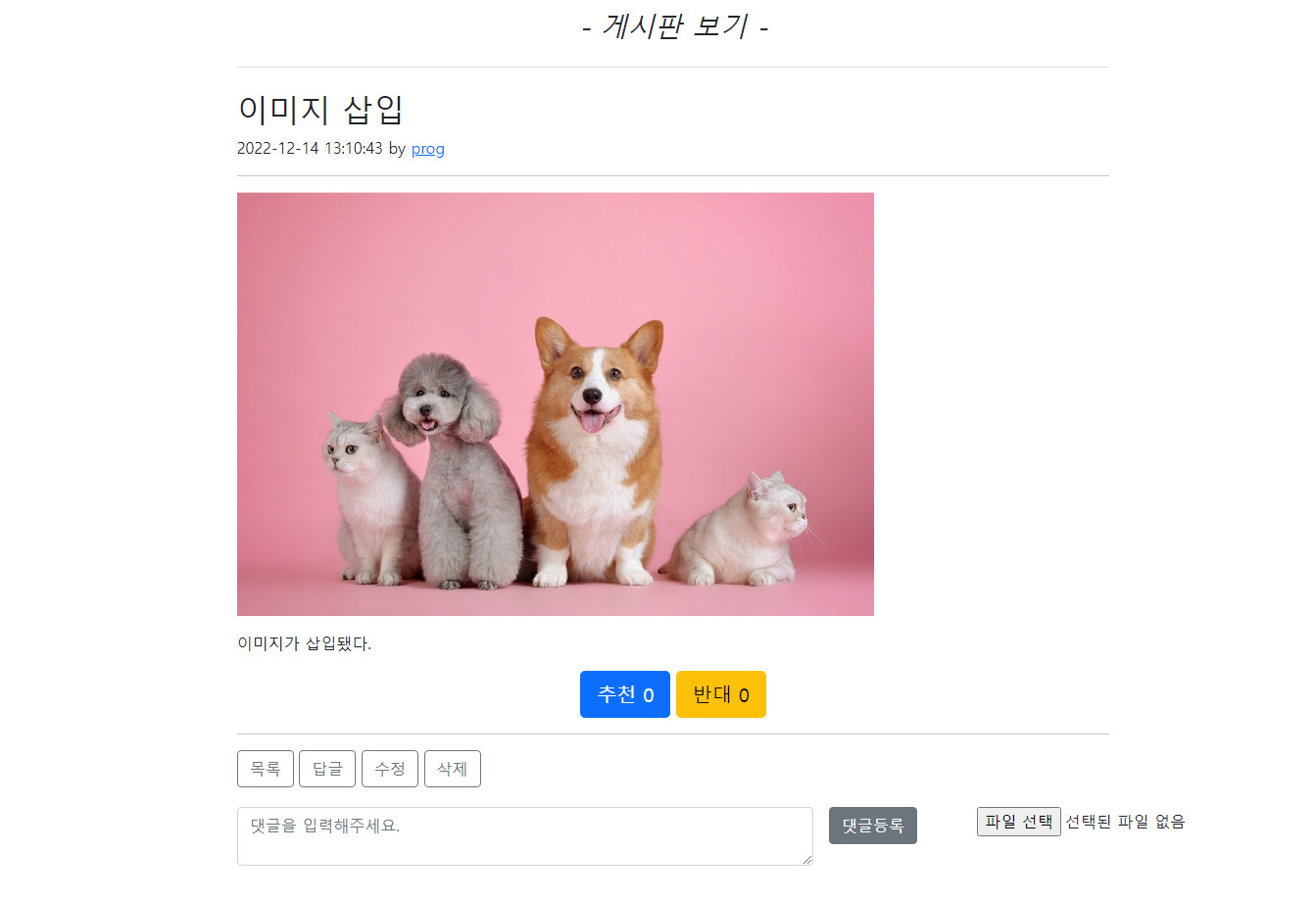 이렇게 끝나면 좋겠지만 이게 끝이 아니다. 이 게시물을 수정하거나 삭제할때 웹에디터에 첨부한 내용에 대해 검증하고 기록해야한다. 그래야지만 글 작성중에 이미지를 등록했는지 또는 삭제했는지 확인할 수 있기때문이다. 다음 시간엔 웹에디터를 이용해 이미지를 삽입해서 작성하는 경우에 삽입한 이미지에 대한 관리에 대해 공부해도록 하자.