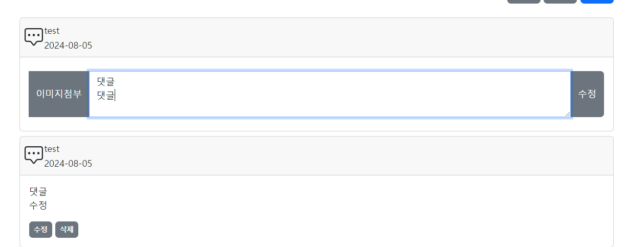 댓글에다가 수정과 삭제 버튼을 달아 보자.